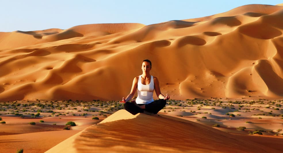 The perfect complement to yoga is meditation, and its effects are boosted in a setting like a desert where you can block out all the “noise” and get in touch with yourself. Amidst this hauntingly beautiful landscape, you will find stress melt away, replaced by a state of inner tranquillity.