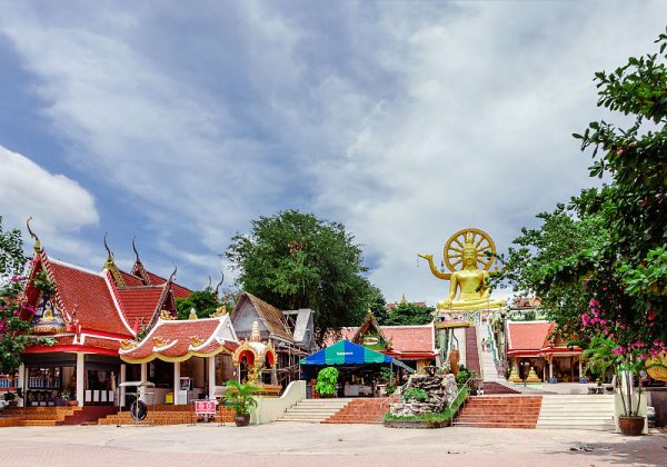 The Big Buddha Temple is located on its own island and is about 3km away from the Koh Samui International Airport, and about the same distance from the Bophut beach.