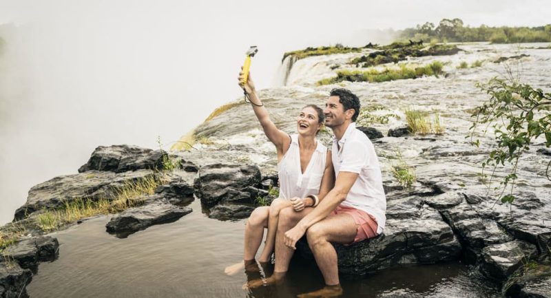 You can only reach Devil’s Falls during seasonal tours to Livingstone Island, operating from June to December. Getting in the water is only allowed when the Zambezi is low enough to be safe. The safest periods for a dip are in October and November, as this is when the water flow is not as fast.