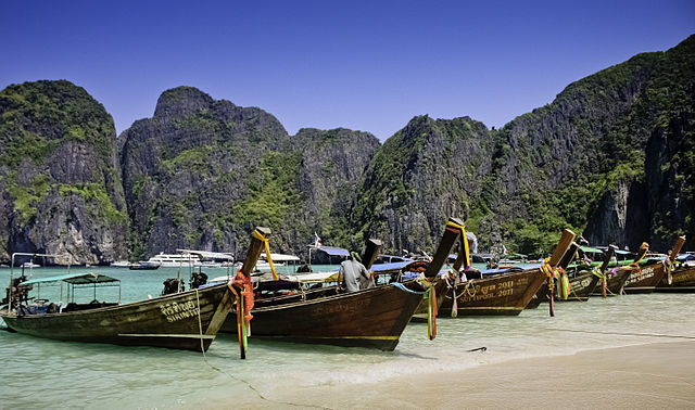 November to April is the best time for visiting Maya Bay, the sea is calmer making it easier to enter the bay; Choppy seas during the months between May and October make the journey less enjoyable. The downside of this famous bay is that the beach is often crammed with speedboats and longtail boats. Ferries bring sightseers to the bay but do not approach the beach, tour boats bring visitors to snorkel or kayak. Overnight camping has also been introduced recently, so there is some drinking and loud noise to be expected. Thousands of people visit Maya Bay daily; early morning or after 5pm are the best times to avoid the crowds.