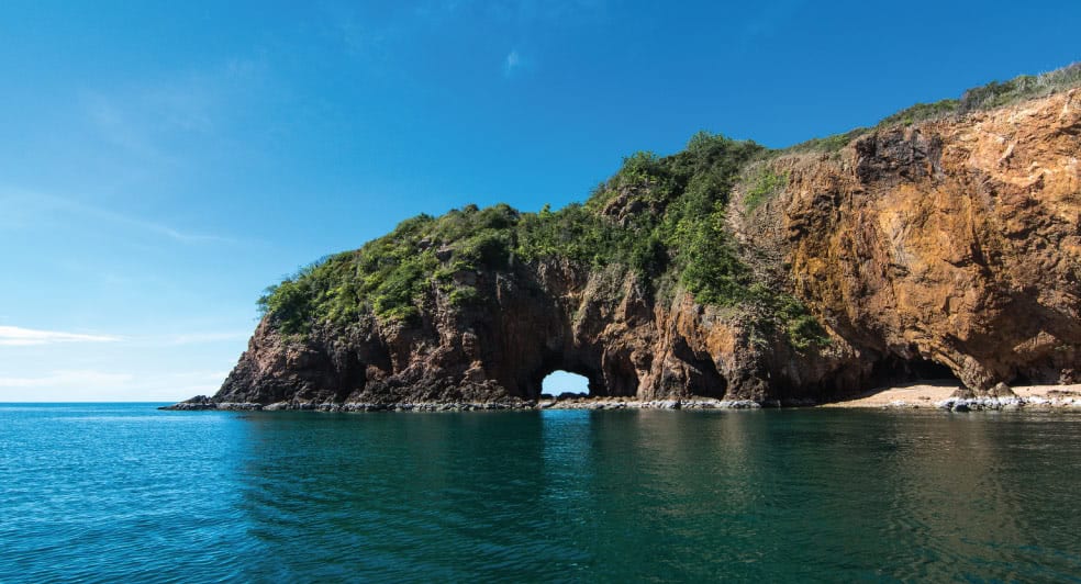 The island has beautiful palm trees dotted along the beaches and a shallow reef that makes the location well suited for snorkelling. Underwater you’ll find stunning coral reefs and a diverse array of fish including parrotfish and wrasse. You can request the help of a professional guide if you feel hesitant on your own. You can also go fishing and bring some crabs back up to the shore!