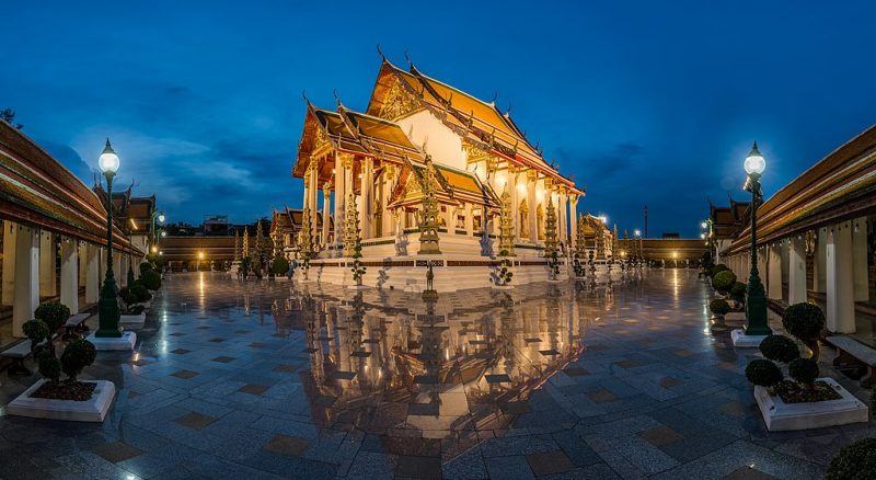 With its exquisite prayer hall topped with multi-tiered, sweeping roofs characteristic of traditional Thai architecture, Wat Suthat Thepwararam is truly a sight behold.